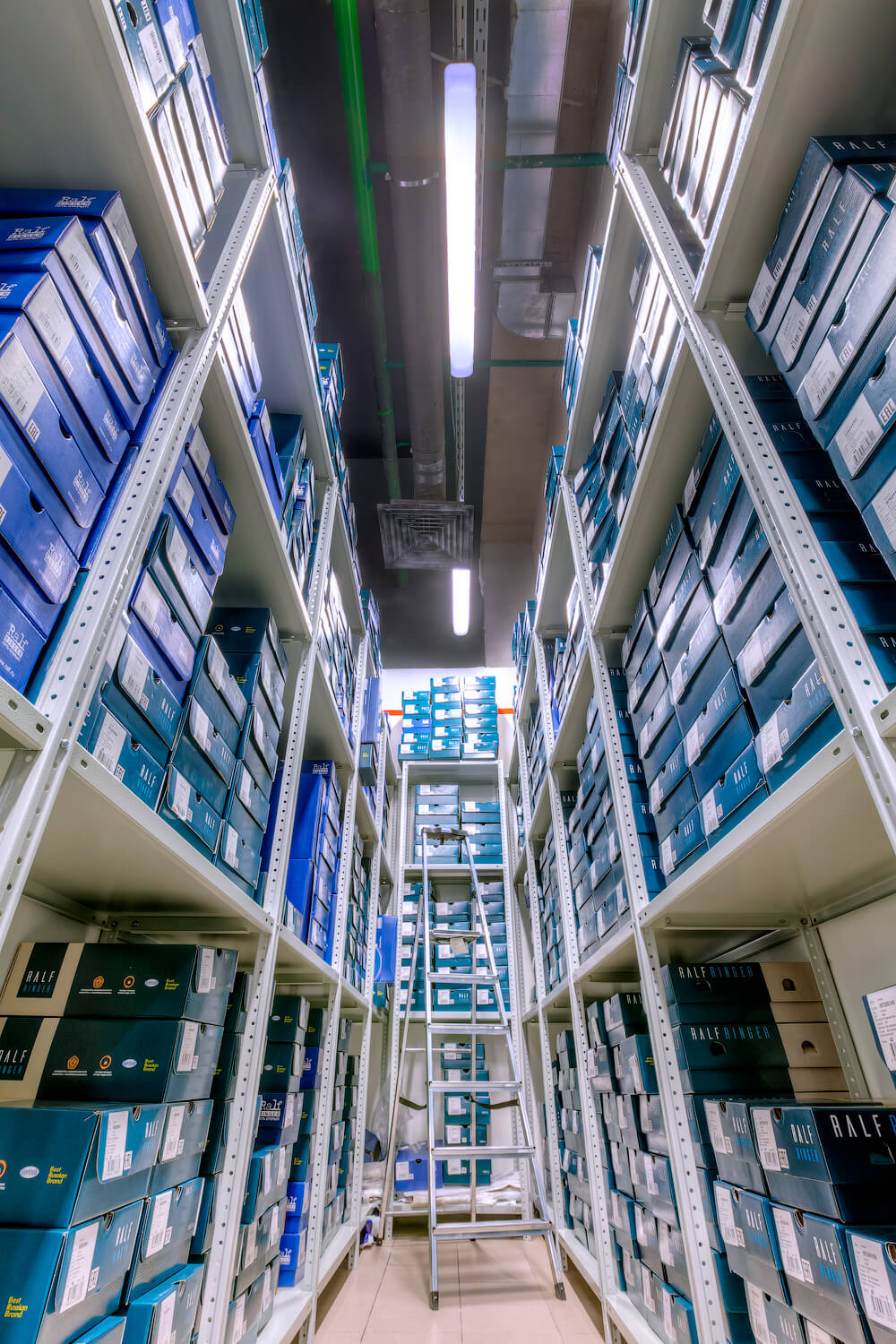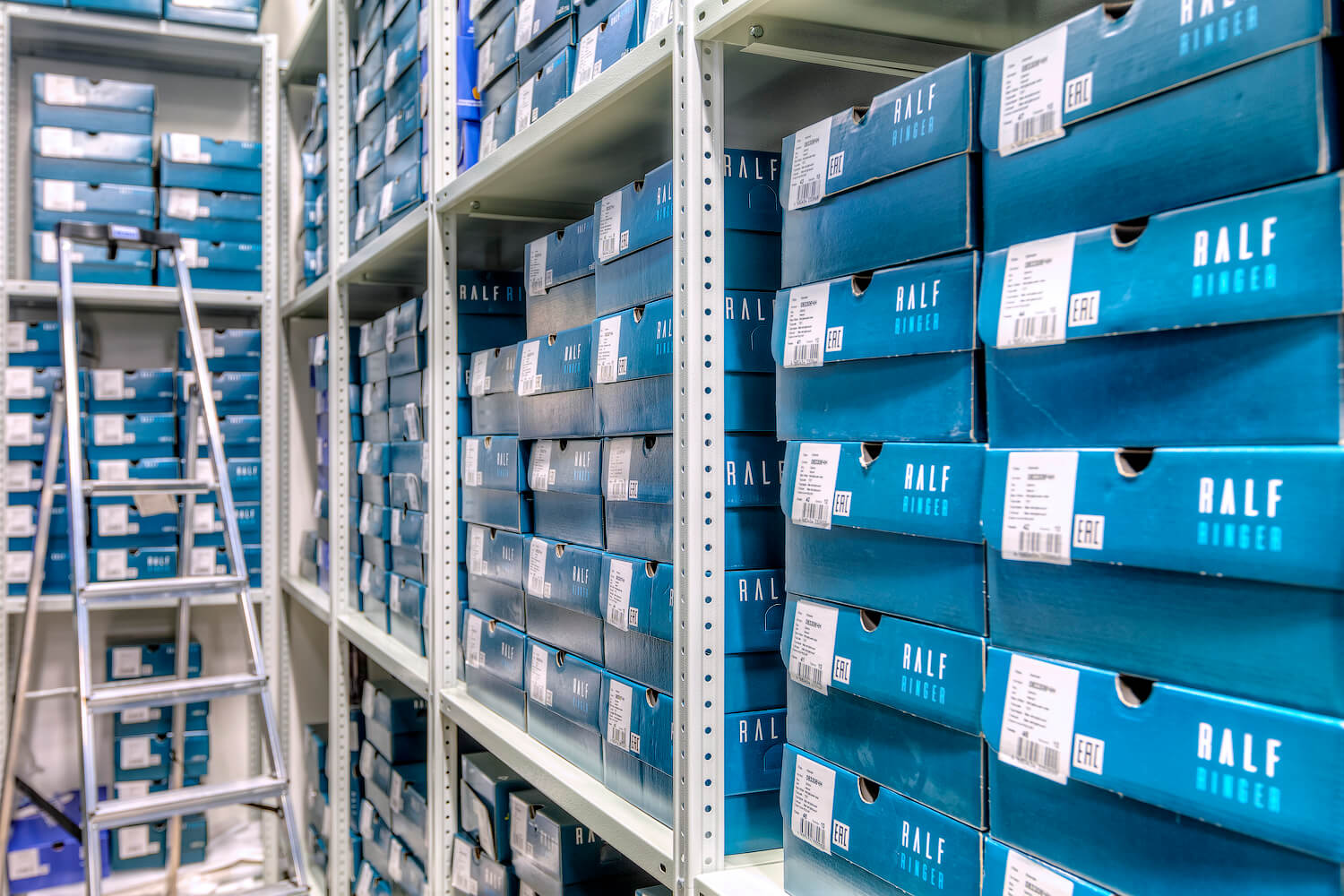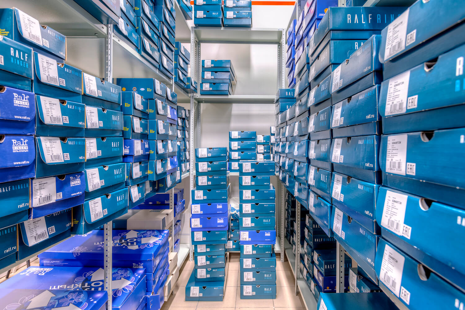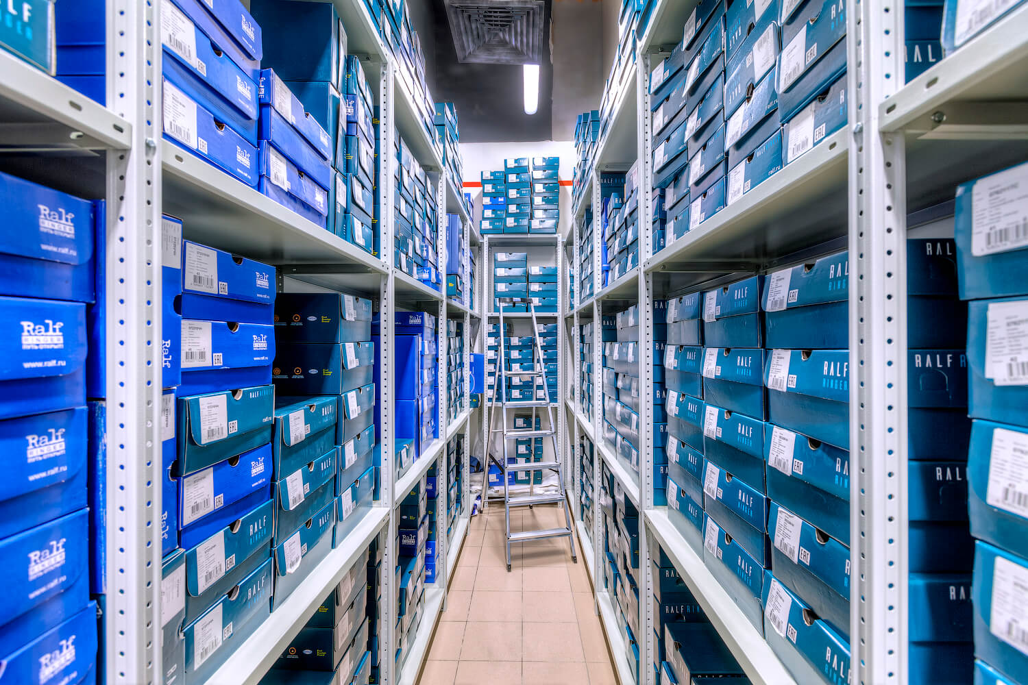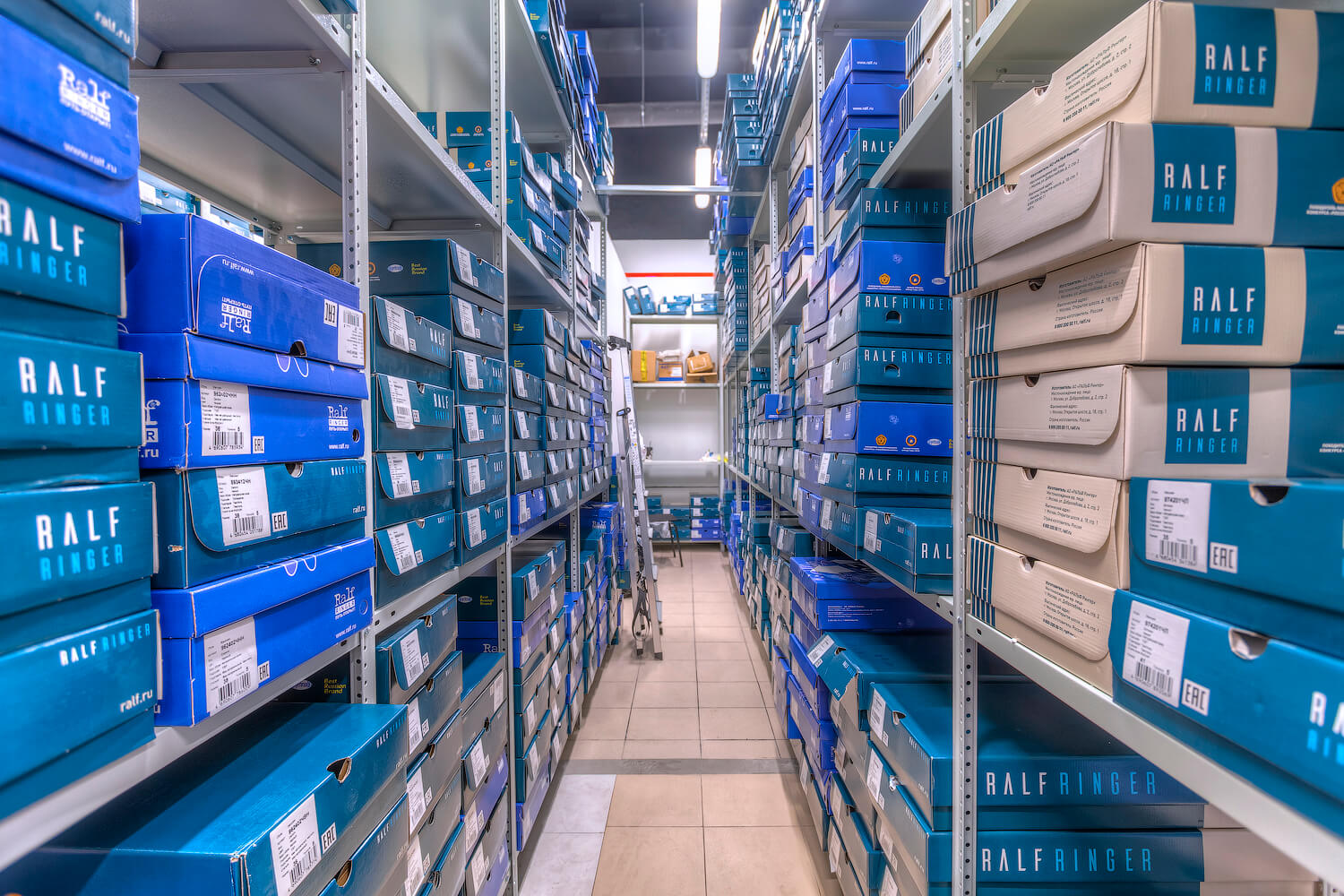 Для компании RALF RINGER являющейся крупной сетью обувных магазинов в России был оборудован склад для хранения товара в коробках. Были поставлены и смонтированы полочные стеллажи ТС «Лайт» высотой 3м, общей площадь которых составила 100 кв.м.